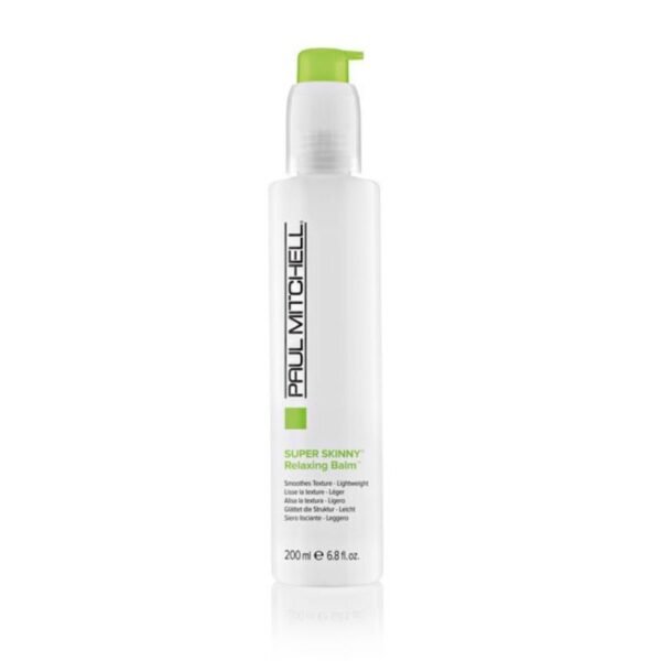 Paul Mitchell Super Skinny Relaxing Balm provides superior slip for easy wet combing and helps protect against damage. Plus, the exclusive Super Skinny Complex slims down hefty locks by displacing water and tightening the hair shaft, leaving you with a modern, clean finish.
